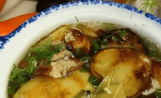 - Dýni oloupejte a zbavte slupky a semen. Dýni vložte do hrnce a přidejte 1,5 litru vody.